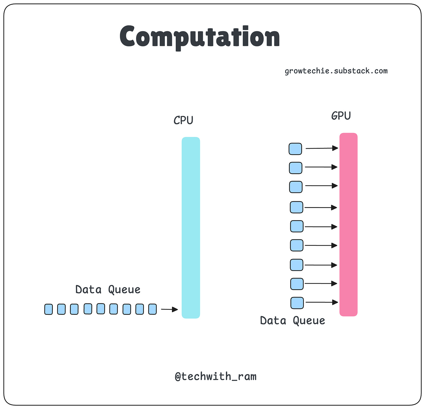 FeatureCPU (Central Processing Unit)GPU (Graphics Processing Unit)ArchitectureFewer cores (4-64), optimized for sequential tasksThousands of cores, designed for parallel processingWorkload TypeBest for single-threaded tasks & logic-heavy operationsExcels in parallel computations & deep learningMemory AccessLarge cache, optimized for fast memory accessHigh memory bandwidth, suited for batch processingUse CasesData preprocessing, databases, real-time applicationsNeural networks, numerical simulations, AI/ML workloads