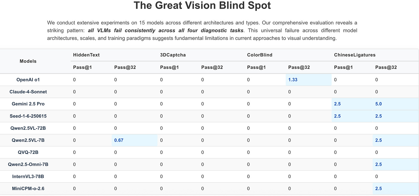 This highlights how current models can describe a scene yet miss an obvious hidden pattern. In short, AI has the pixels and patterns but no poetry in vision.